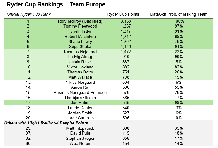 Ryder Cup Rankings Tracker