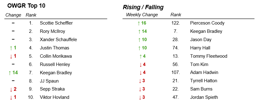 Note: Rising / Falling includes biggest movers in the OWGR Top 150