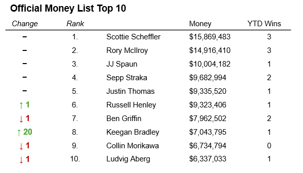 PGA Tour Money List Tracker