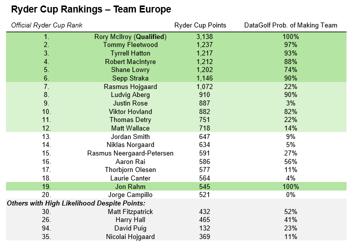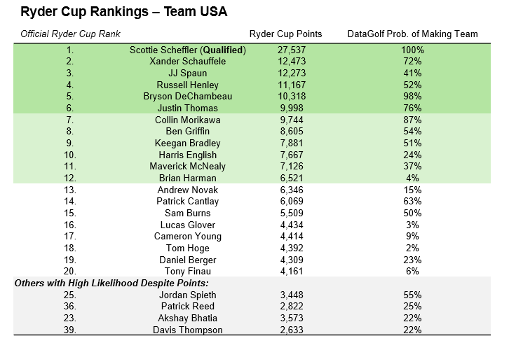 Ryder Cup Rankings Tracker