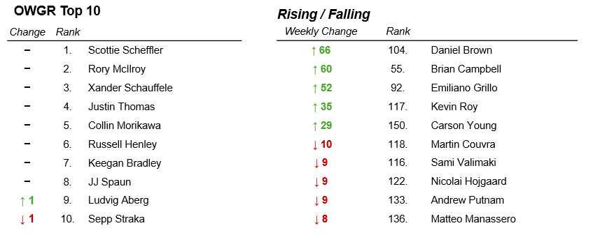 Note: Rising / Falling includes biggest movers in the OWGR Top 150