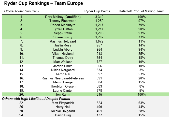 Ryder Cup Rankings Tracker